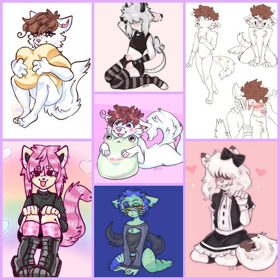 comes with everything from a simple sheet + as much info as you want, an extra body shot, and extras (collars, plushies, etc)